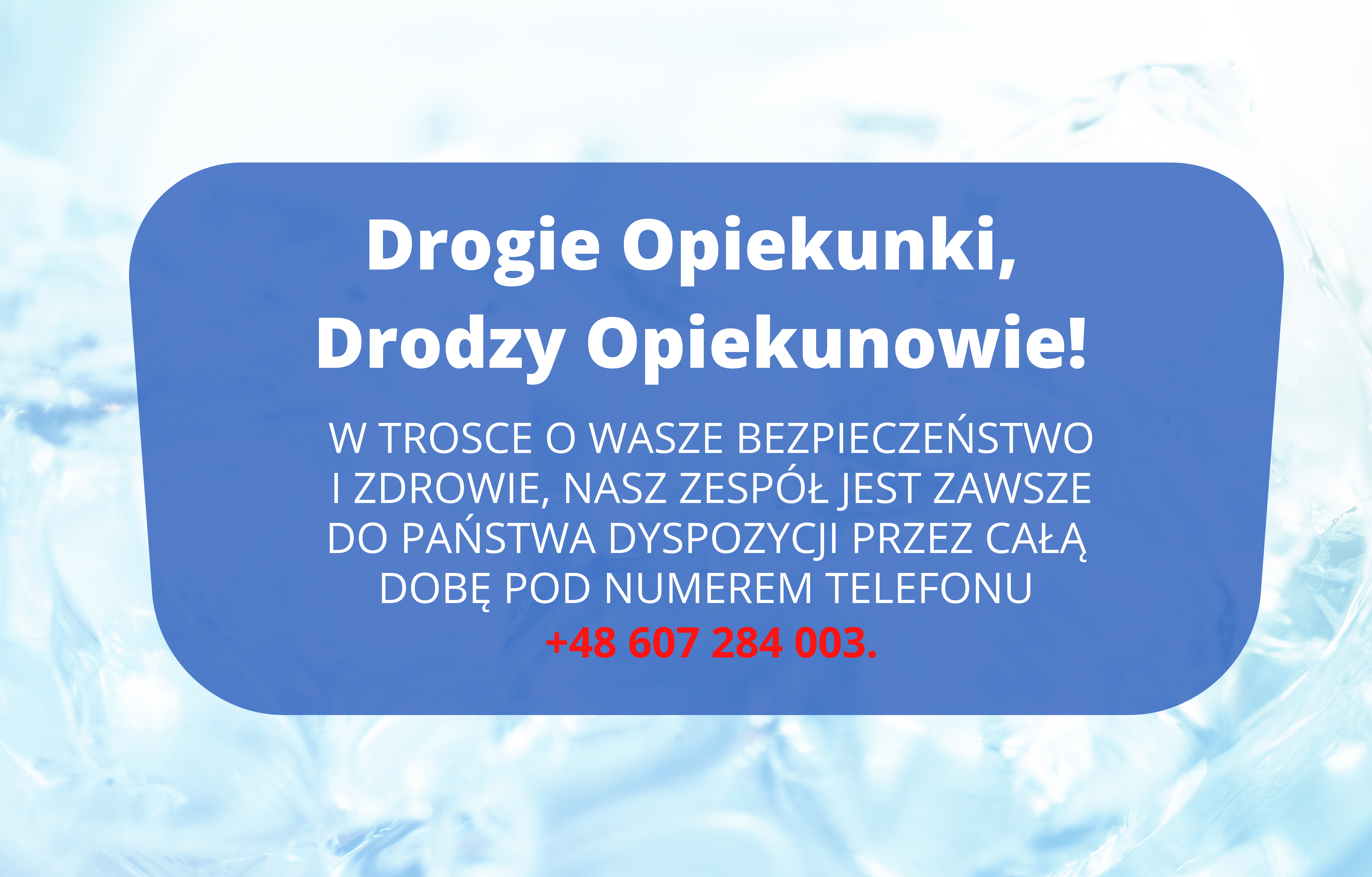 Obecna sytuacja, która ma miejsce w Europie, skłania nas do zachowania szczególnej ostrożności oraz przestrzegania dodatkowych zasad bezpieczeństwa. Stale monitorujemy sytuację za naszą zachodnią granicą oraz w Polsce. W przypadku nowych i szczególnie istotnych, wiadomości oraz zaleceń będziemy Was na bieżąco informować. Wszelkie podejmowane przez nas działania mają na celu zminimalizowanie wystąpienia jakiegokolwiek zagrożenia. Teraz najważniejsze jest bezpieczeństwo Wasze oraz Waszych podopiecznych!
