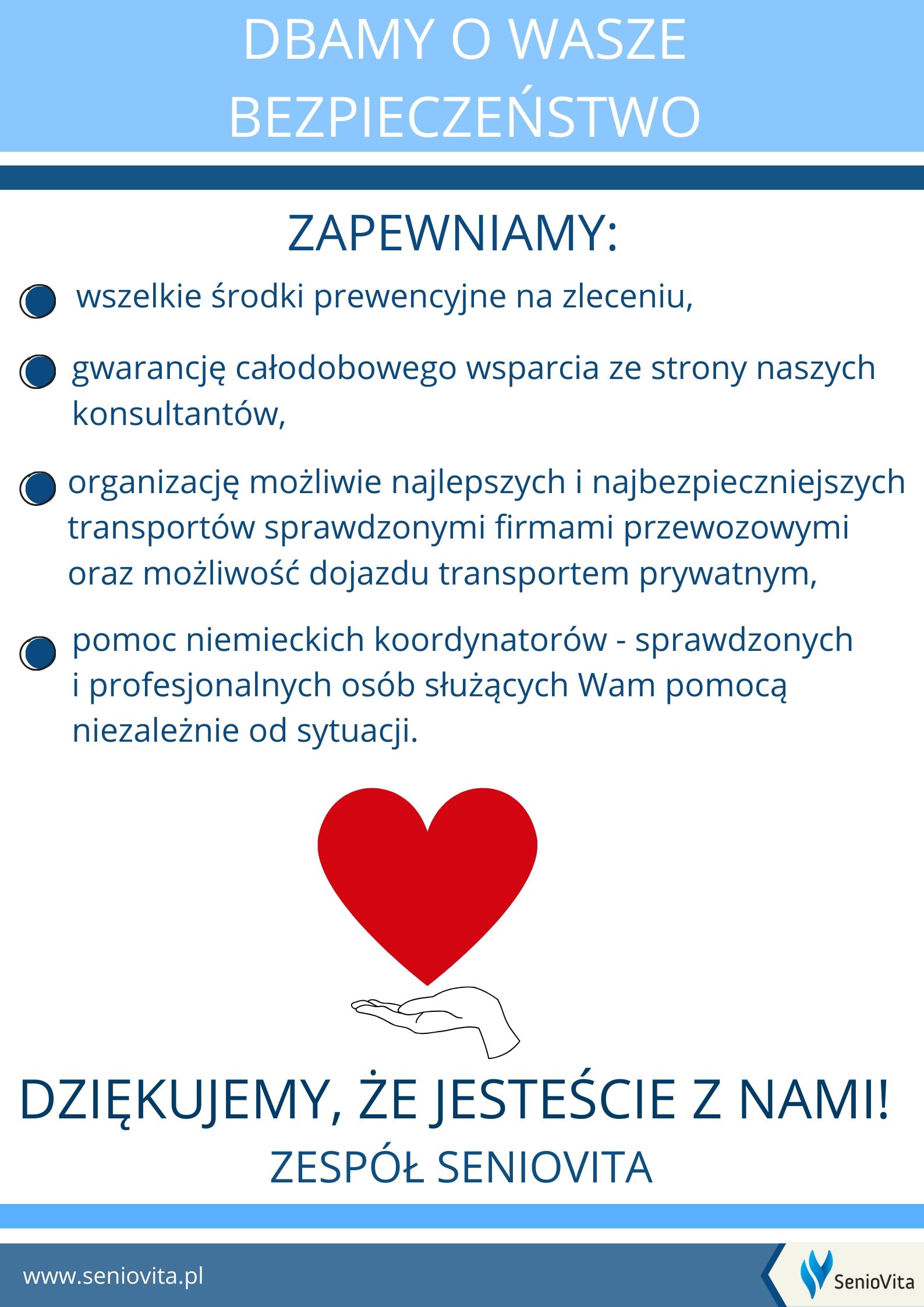 SenioVita dba o to, by każda Opiekunka i Opiekun przed wyjazdem na zlecenie był poinformowany oraz poinstruowany o procedurach związanych z kwarantanną w Niemczech.