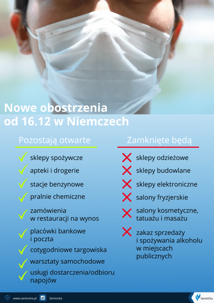 Od 16 grudnia do co najmniej 10 stycznia w Niemczech obowiązują nowe obostrzenia, które są istotne dla Opiekunek i Opiekunów z Polski. W związku z pogarszającą się sytuacją epidemiologiczną w Niemczech zostanie wprowadzony tzw. twardy lockdown.