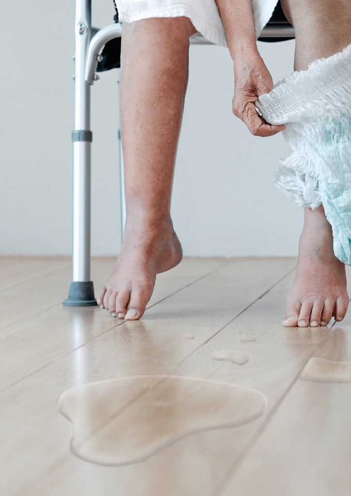 Inkontynencja moczowa, czyli nieświadome i mimowolne nietrzymanie moczu. Na początku daje o sobie znać przez tzw. „popuszczanie”, jednak często prowadzi do utraty kontroli nad pęcherzem moczowym w stopniu całkowitym (nieświadome oddanie całego moczu z pęcherza).