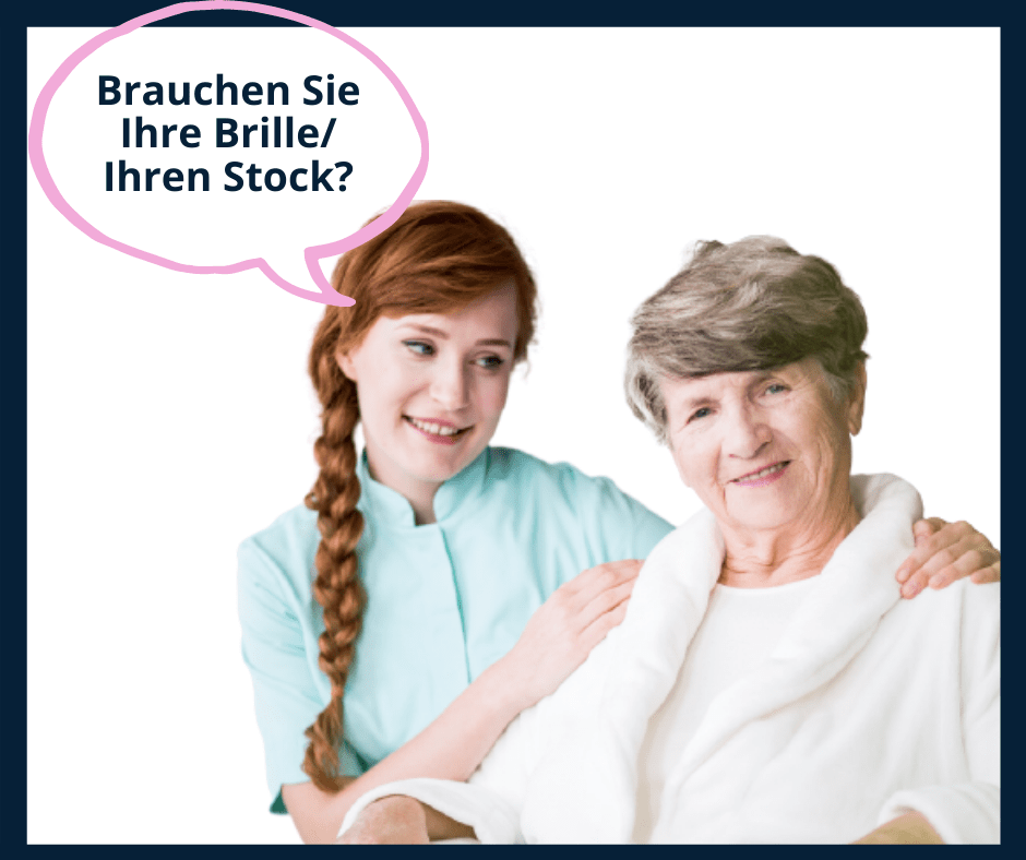 - Brauchen Sie Ihre Brille/ Ihren Stock? Czy potrzebuje pani okulary/laskę?
