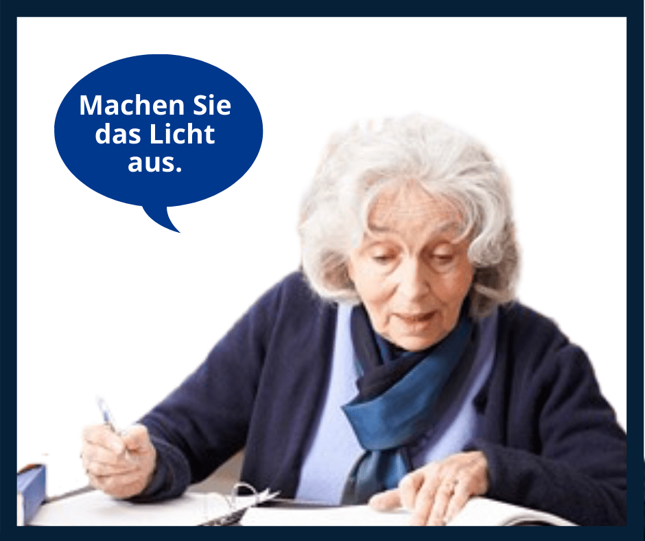 Machen Sie das Licht aus/an. – Proszę wyłączyć/włączyć światło.