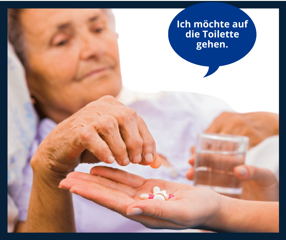 Bitte setzen Sie mich in den Rollstuhl. – Proszę posadzić mnie na wózek inwalidzki.